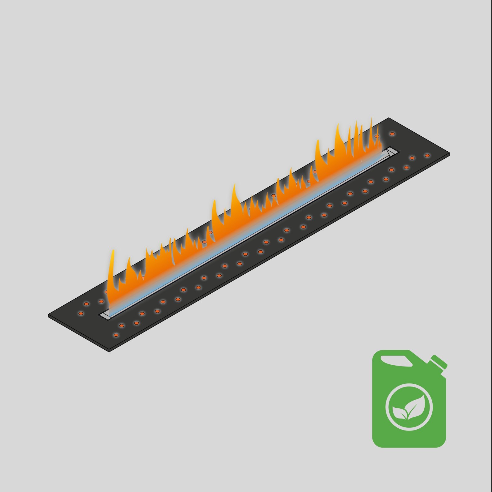 A wide style Bio Ethanol fire, set to rival any media wall look. Giving the user a clean efficient fire with a real living flame, that gives an ambience to admire and heat to keep you warm and cosy, all with just the simplicity of filling a tank and pressing a button.