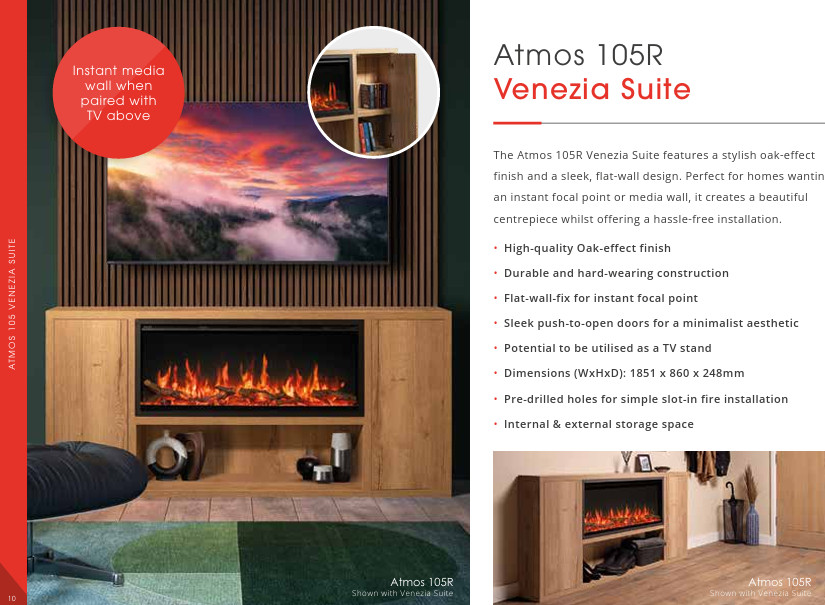 Whether you choose a wall mounted fireplace, a TV media wall with an electric fire, or an inset fire for a sleek, built-in look, the FireFX Atmos electric fire range delivers. Designed for simple installation, these built-in fires feature magnificent flame and ember visuals, controllable from the palm of your hand using the included remote control.