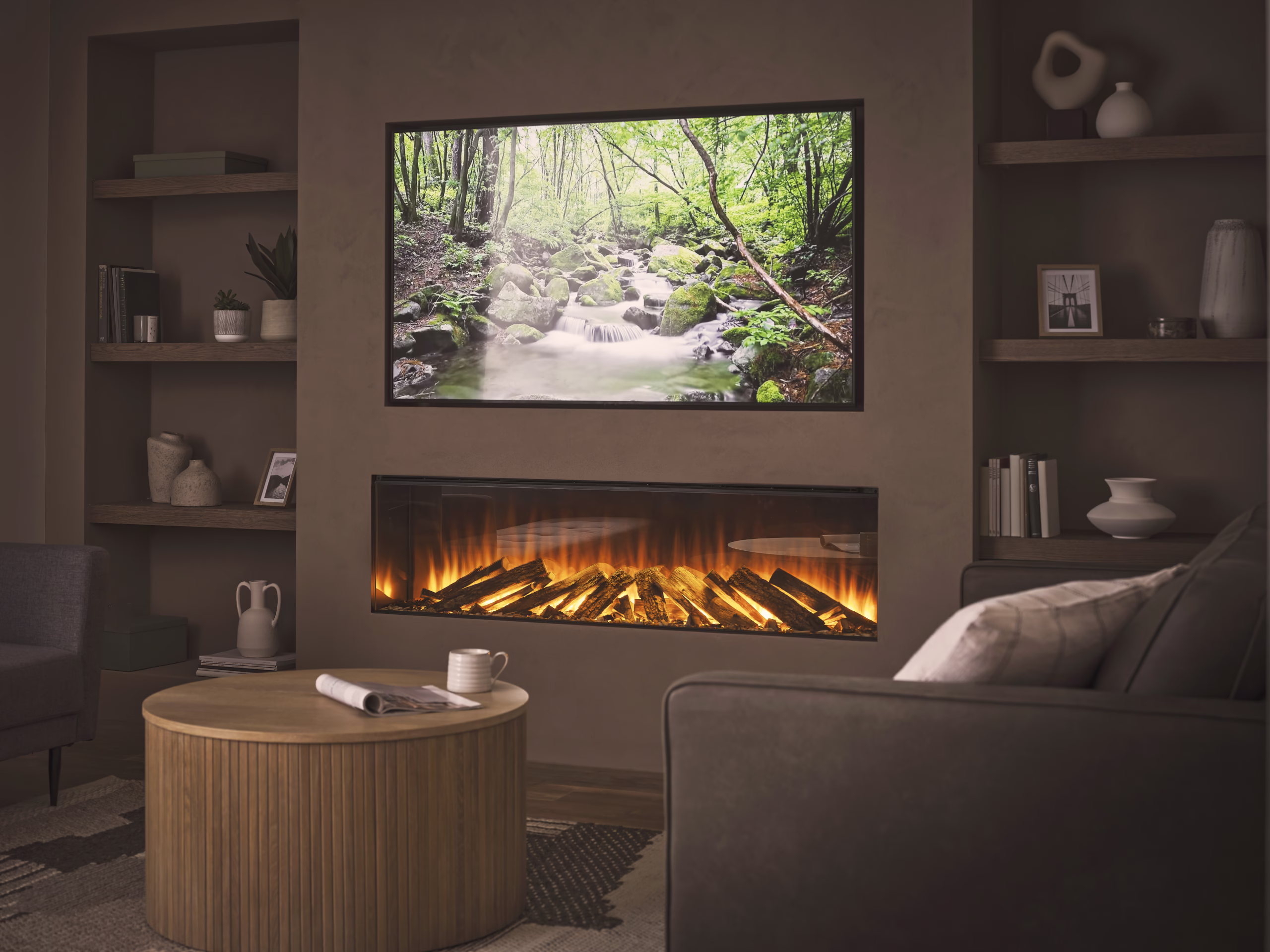 The New Forest 1600 electric fire makes for a great media wall centre-piece.