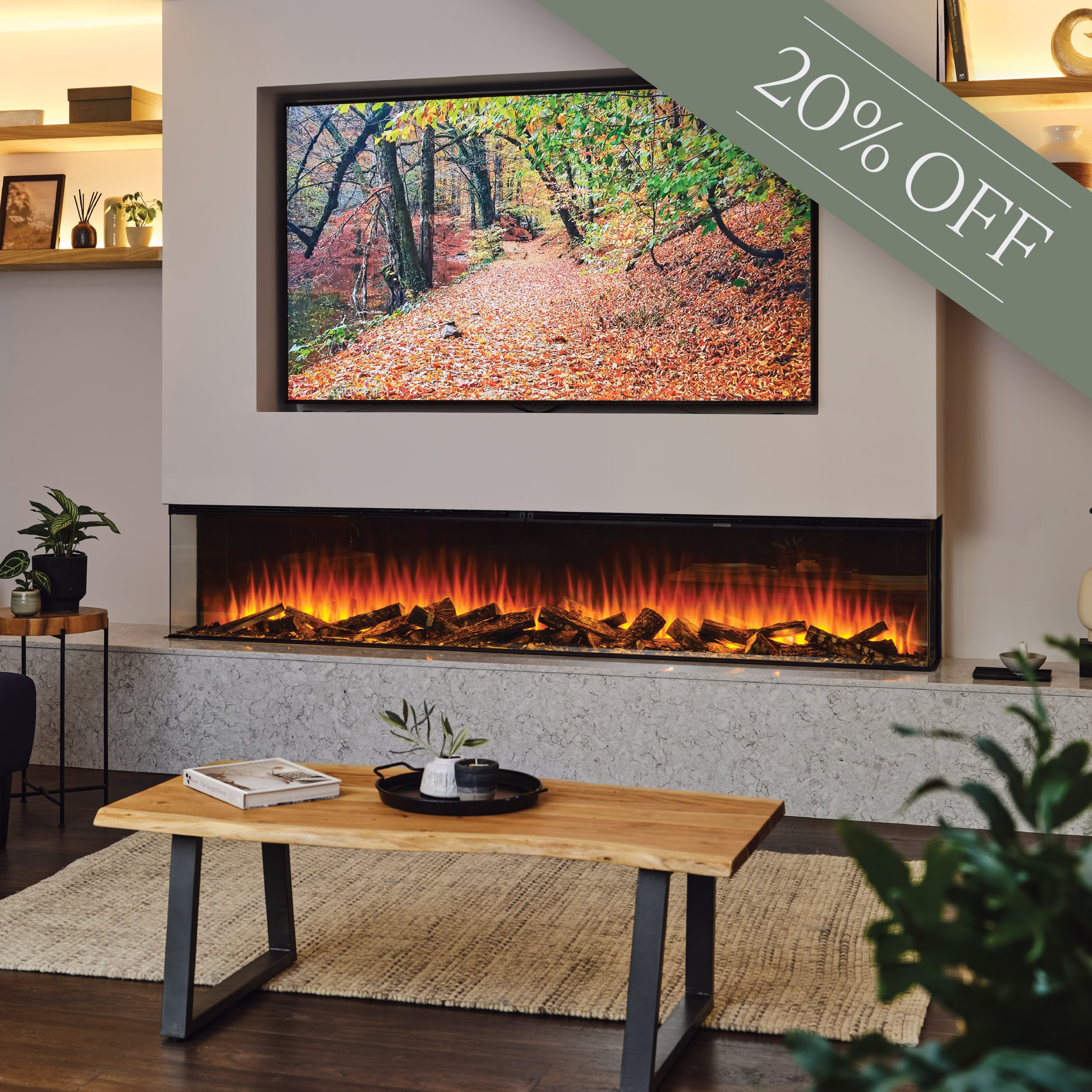 British Fires New Forest 2400 Electric Fire is the widest model available and perfectly designed to be a prominent piece for large spaces and media walls.
