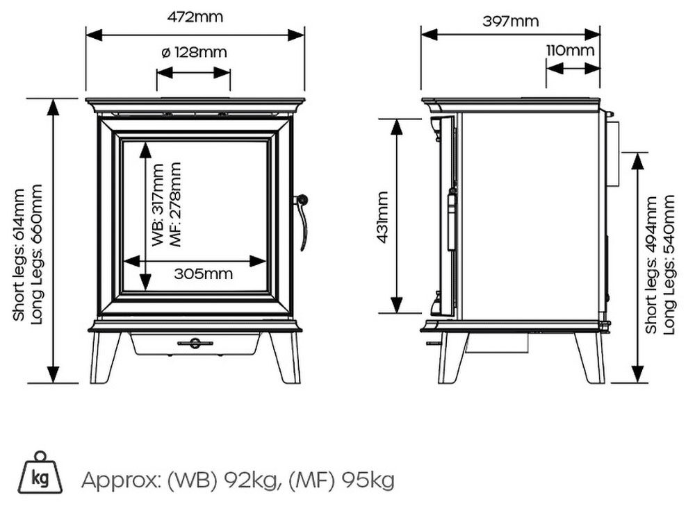 Designed around our triple airflow combustion systems, these elegant convector stoves deliver exceptional heating performance whether you choose a dedicated wood burning or multi-fuel version. Both versions feature the range’s convector design to reduce distance to combustibles and enhance heating capability.