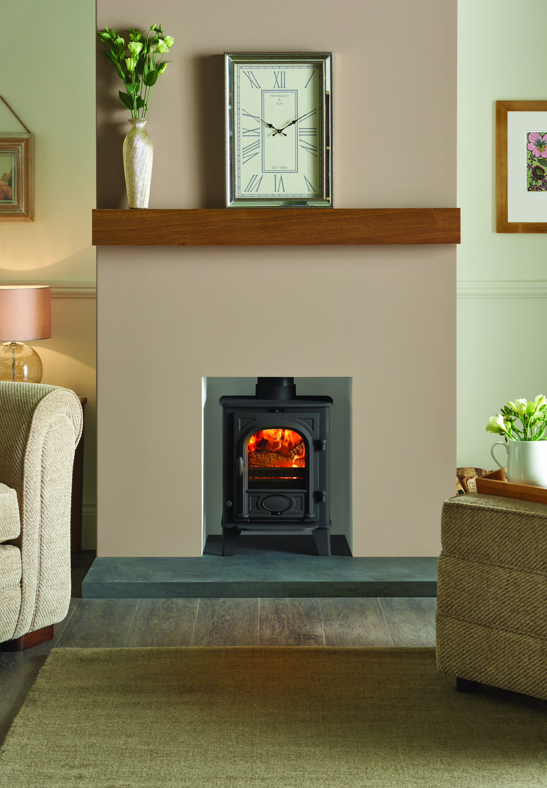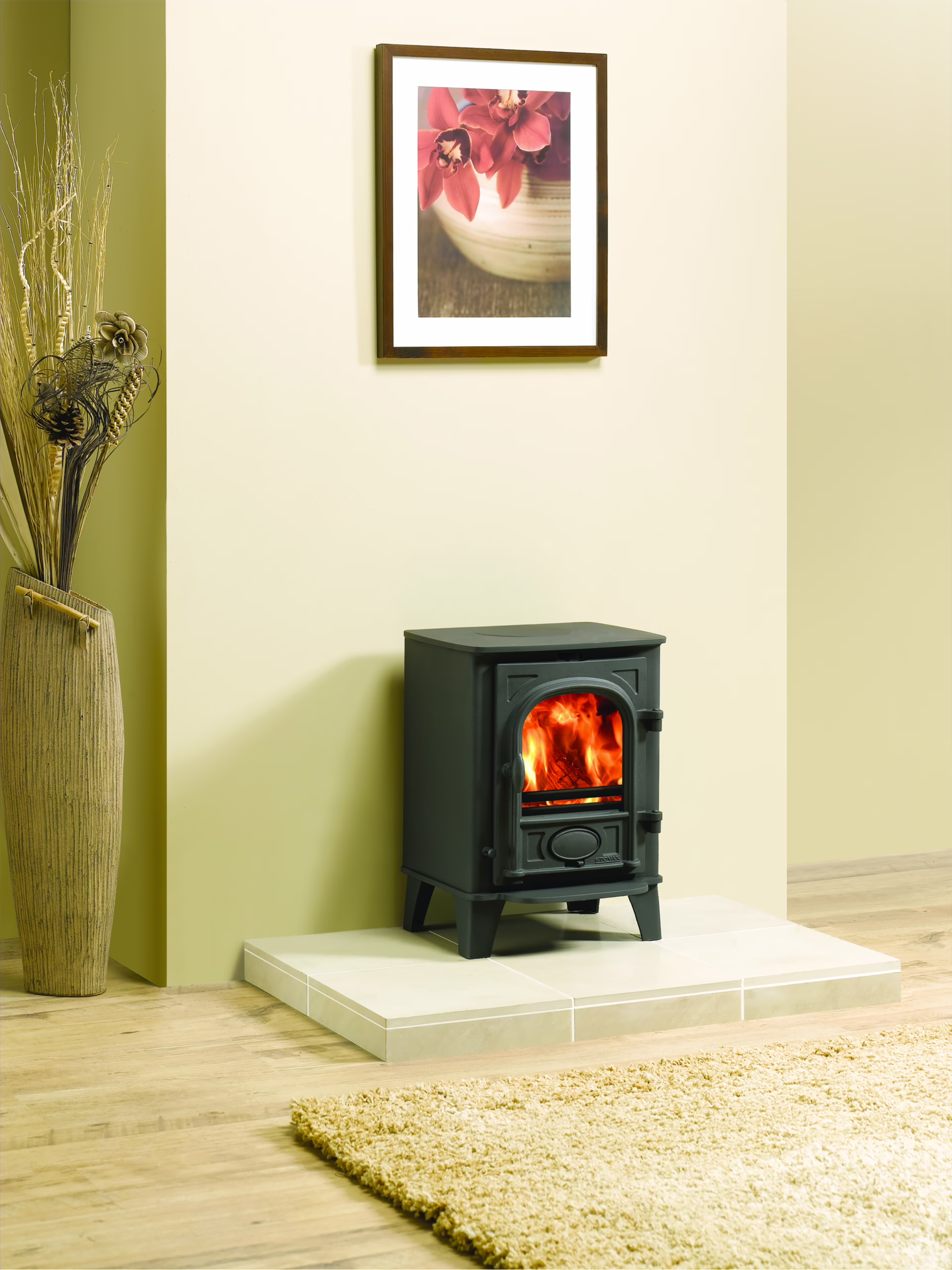 The compact Ecodesign Plus Stockton 3 is specifically designed to fit neatly into a standard 22”(560mm) high x 16”(405mm) wide fireplace opening with the chairbrick removed.